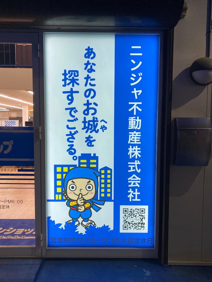 前面にキャラクターも載せて 不動産アピールと同時に 店舗のイメージUPを狙って設置